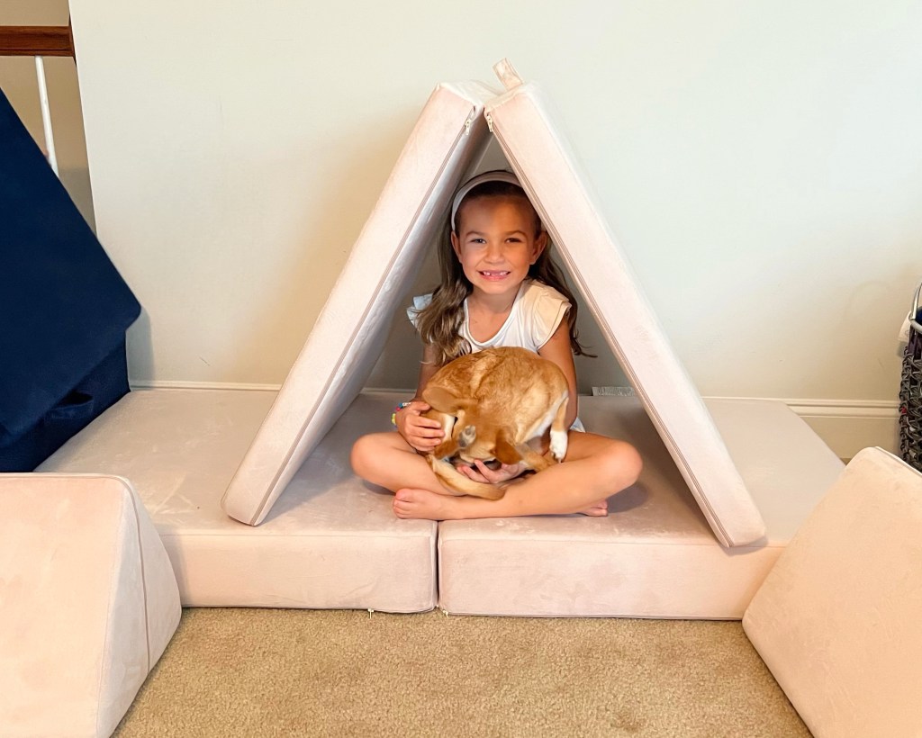 This modular sofa allows kids to arrange the foam pieces in different ways depending on how they wish to play! What this mama loves most, is that the outside covers are machine washable! That is perfect for my kids that are constantly drinking and snacking and lounging about!
