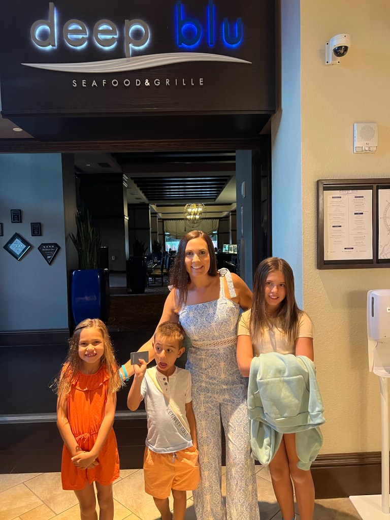 Dinner at Deep Blu was delicious and amazing as well! From the steak and salmon, to the kids meals… everyone enjoyed their meals! I’m still raving to everyone about how they have to try the kid’s Mac and cheese there. It was by far the best Mac n cheese I have had in my life! Our waitress was amazing from start to finish as well!